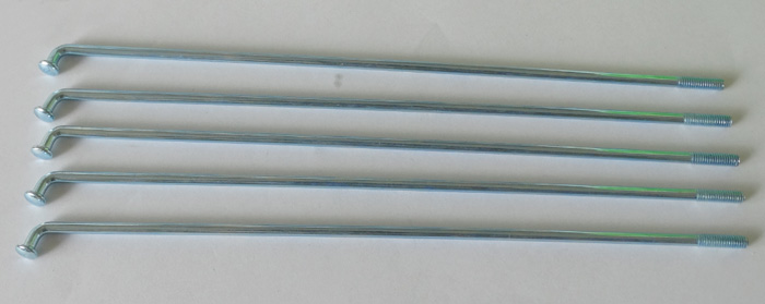 摩托車輻條,尺寸:120-230(mm),型號:C90。主要規格有 8G、9G、10G、11G、12G、13G、14G、15G長度為45mm-308mm,條母有普通型、銑槽、加長型銑槽及加長型銅條母。主要用于連接摩托車外輪和輪轂。摩托車輻條一端有個90度彎角穿過車抽盤的小孔,另一端有輻條帽穿過輪轂的輻條孔。通過調節輻條的松緊來調整摩托車車輪轉動是不是在同一個平面上。這樣,摩托車行駛會更穩。